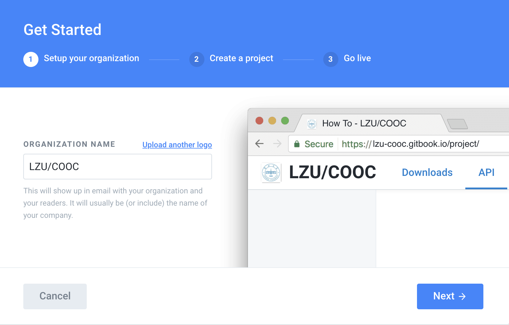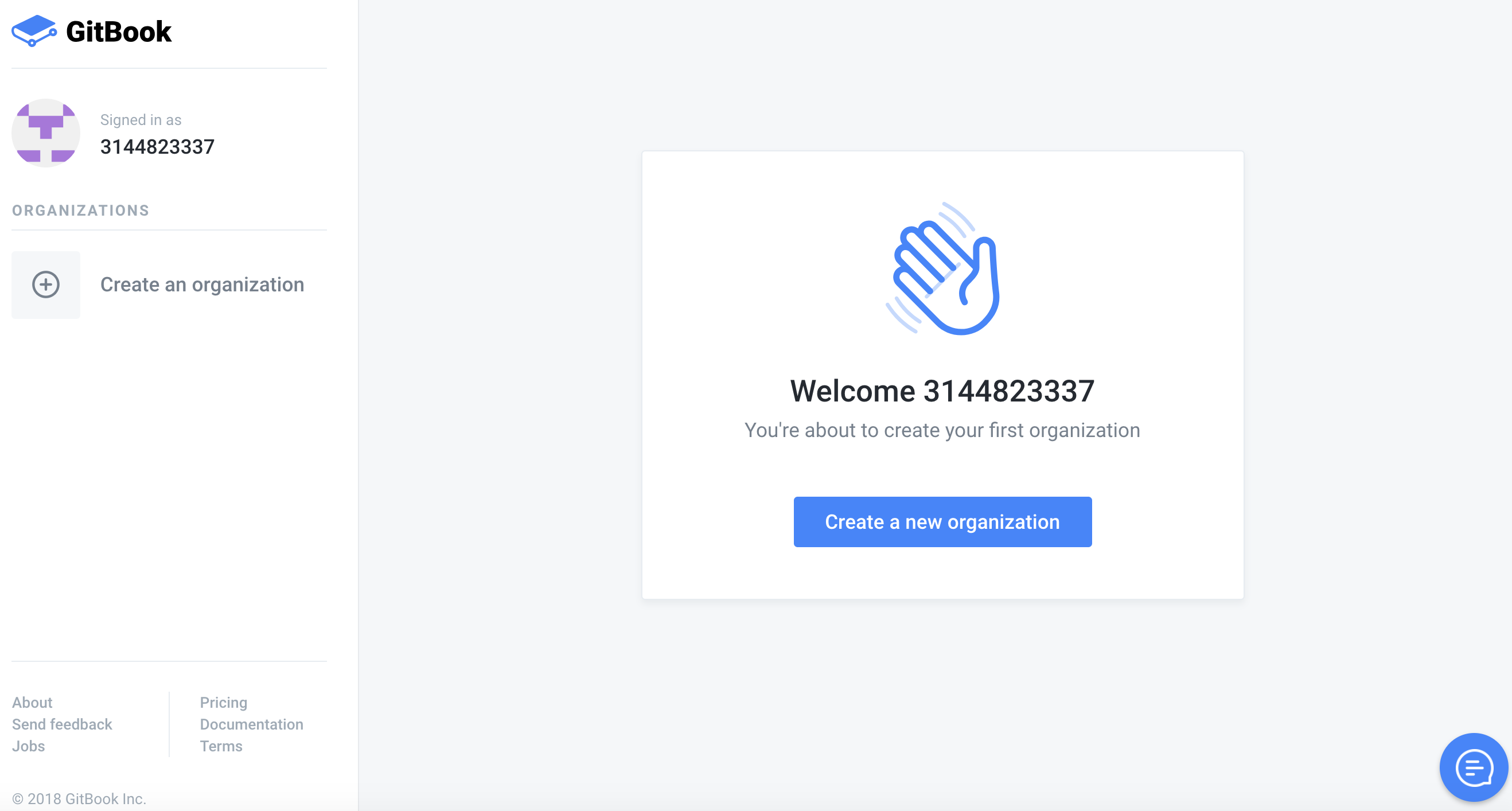 4.After entering GitBook, click "create a new organization" to create an organization.