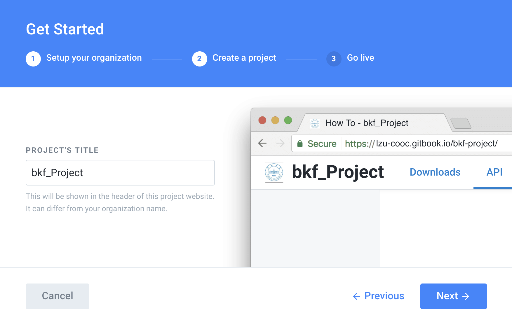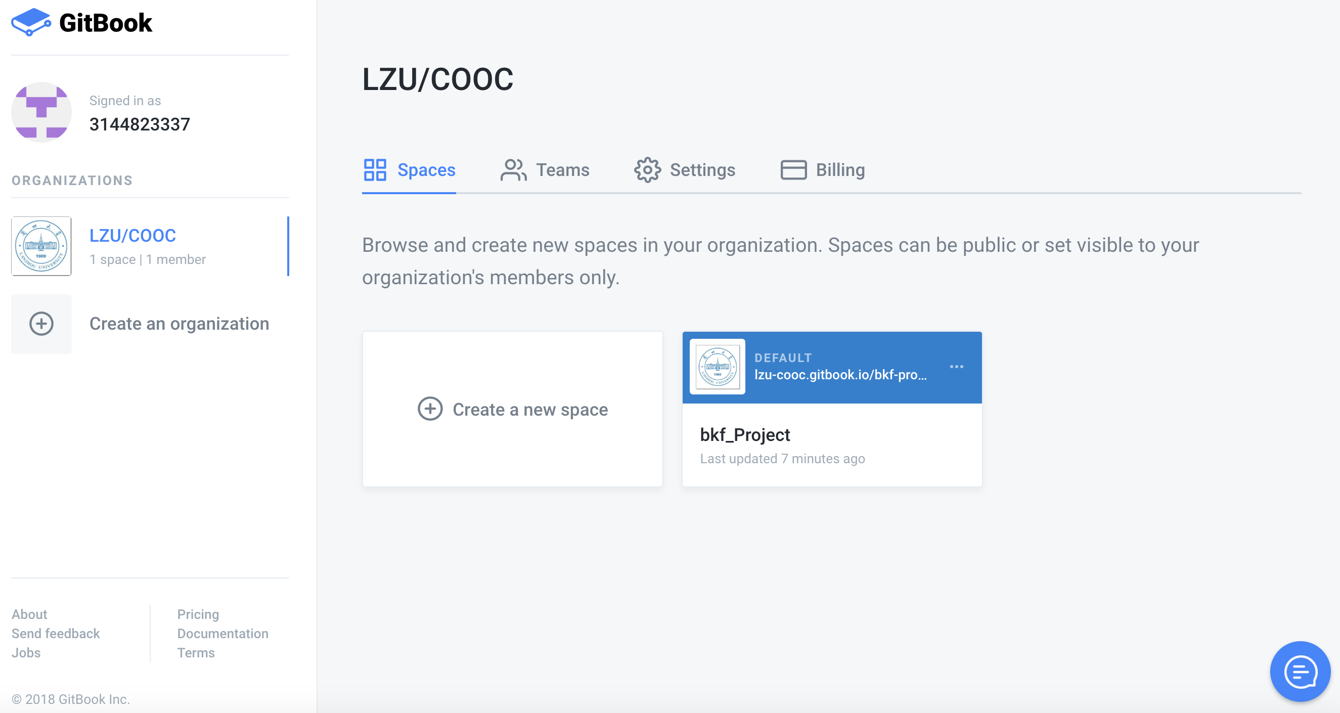 5.Once created, as shown below, you can create another book with bkf-Project in the LZU / COOC organization.