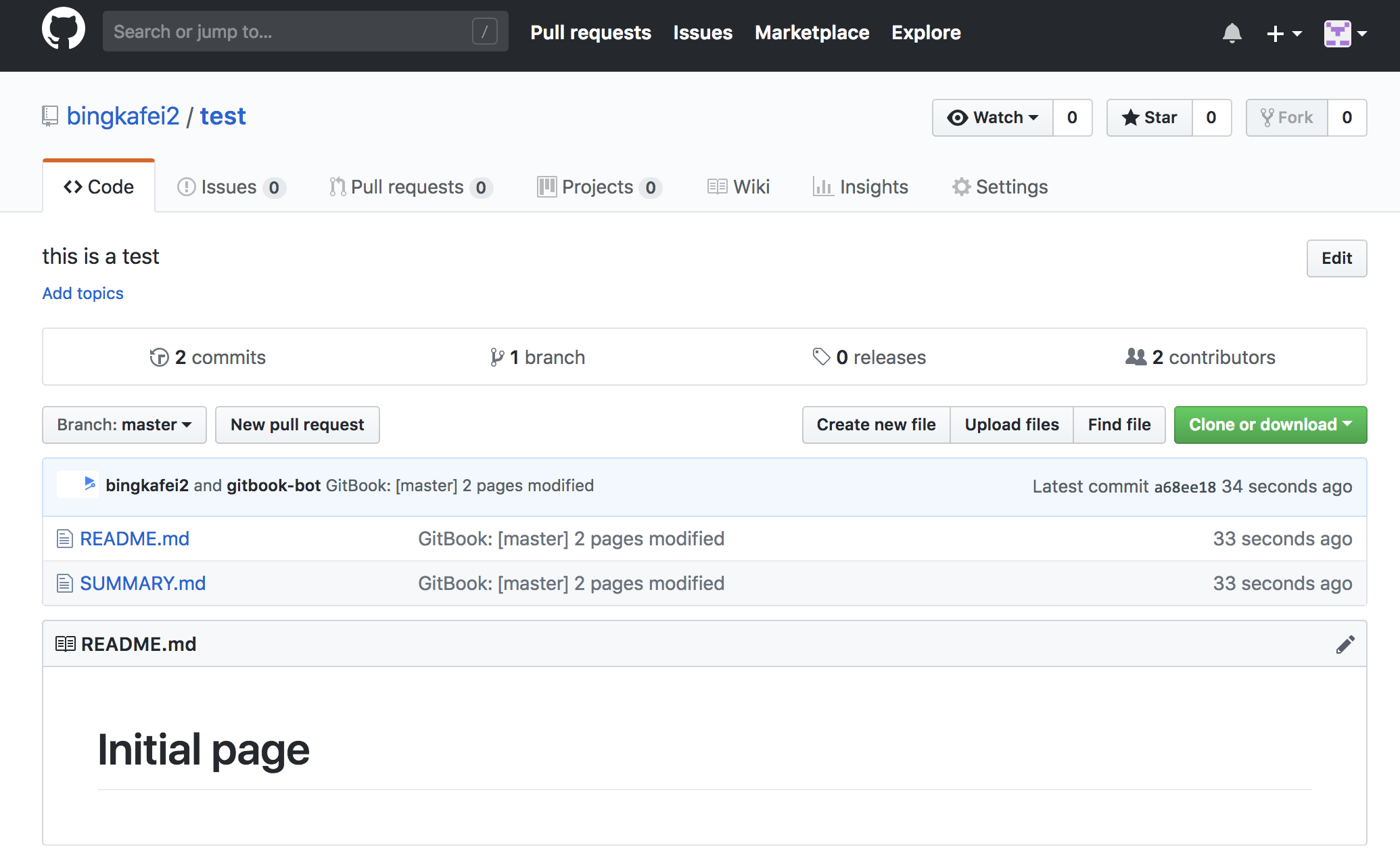 12.After synchronization, we went back to Github's test repository for refresh and found that it did change, so the connection between Gitbook and Github was successful.